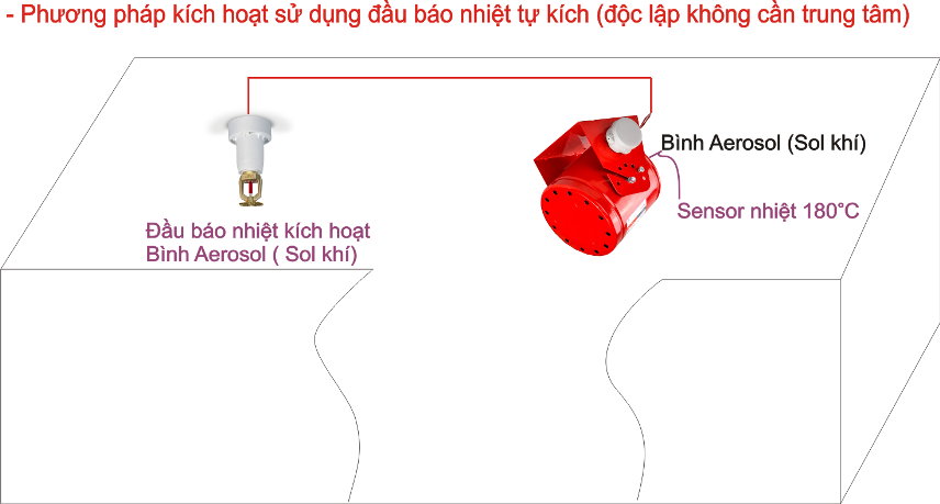 Sử dụng hệ thống kích hoạt bằng đầu báo nhiệt tự kích, khi nhiệt độ xung quanh tăng lên, đầu báo sẻ tự kích hoạt bình không cần trung tâm kích hoạt…Cơ chế này thường được ứng dụng chữa cháy cho các không gian nhỏ, tủ điện, tủ rack, trụ bơm xăng dầu…