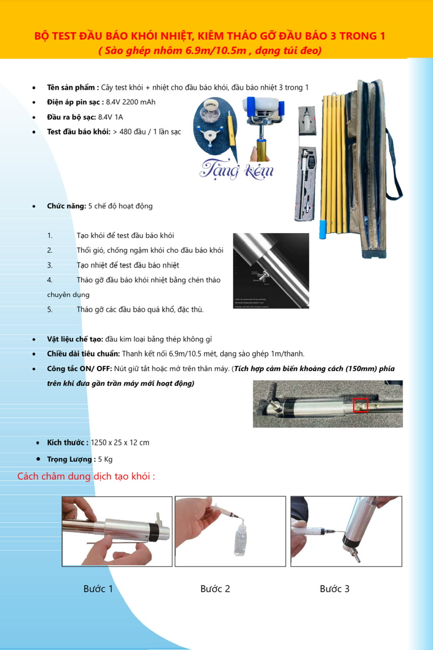 Bộ test đầu báo khói + Nhiệt kiêm Tháo – Lắp đầu báo