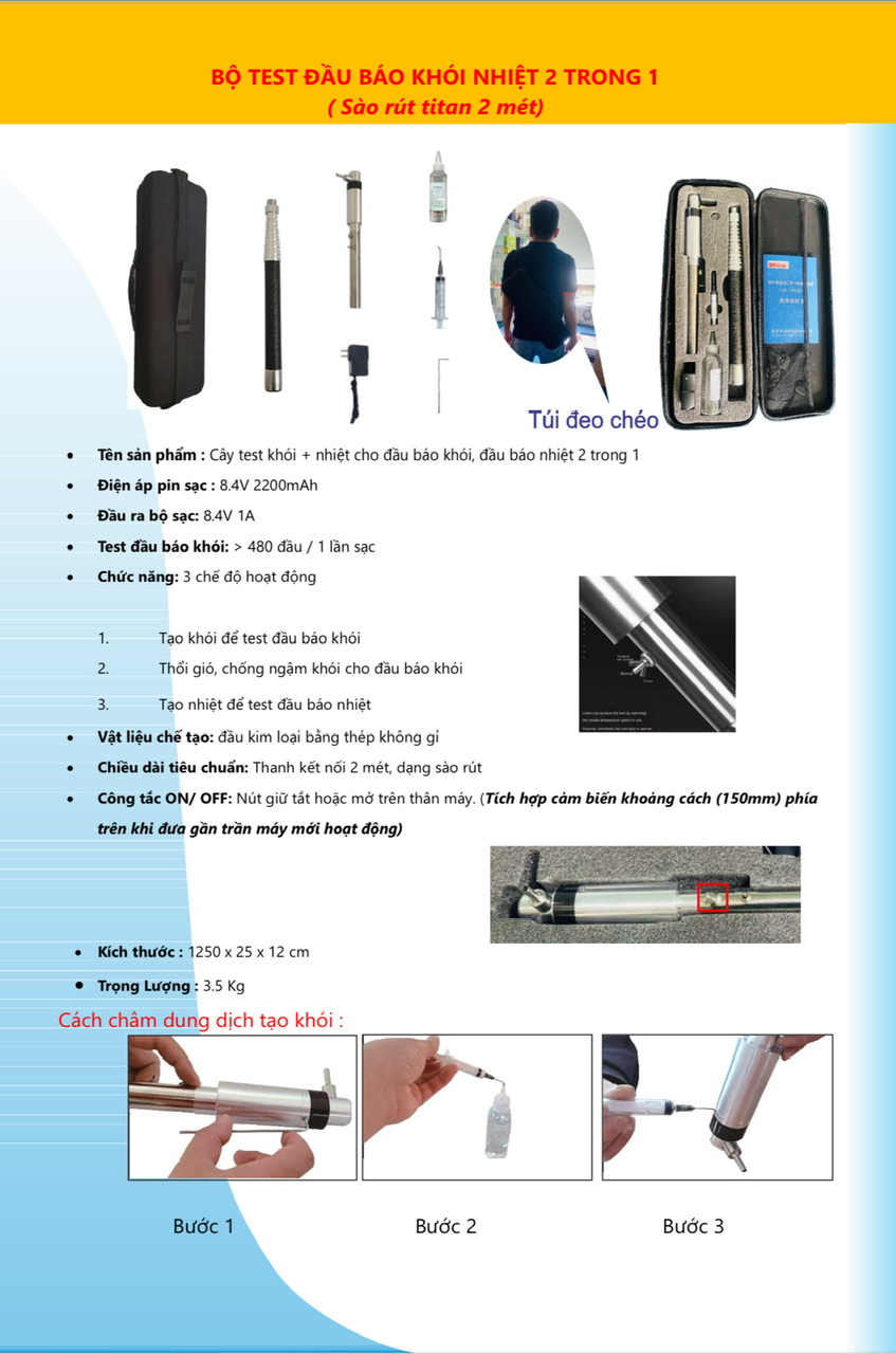– 1 Đầu test khói nhiệt tích hợp pin sạc